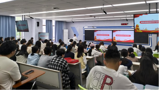 本网讯(通讯员 杨雅)4月10日中午,环境生态与生物工程学院在3208智慧教室举行2026年春季学院党委分党校培训班开班仪式。学院党委书记、分党校校长孔海霞,党委副书记、分党校副校长郑冬洁,全体辅导员,77期入党积极分子和19期发展对象培训班全体学员,以及上一期优秀学员和2025年下半年新发展党员共计100余人参加了开班仪式。仪式由培训班班主任杨雅主持。