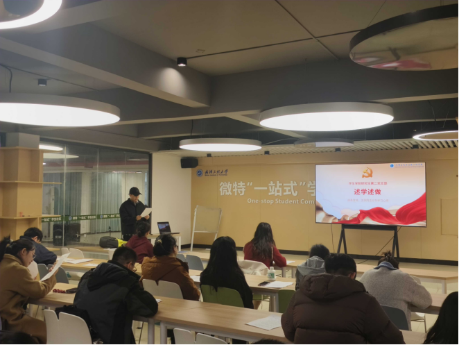3月26日,研究生第二党支部于“一站式”学生社区钟楼023会议室开展了 3 月主题党日活动。全体党员起立奏唱国歌、重温入党誓词,梅静文同志领学党章中党的组织部分内容。谢佳佳同志讲授微党课,聚焦树立和践行正确政绩观,深入开展党性教育,并集中领学党的二十届四中全会精神、全国两会精神、中央政治局会议精神等内容。秦首城、王源同志联系思想与科研实际,交流了学习体会。最后,党支部书记夏静同志围绕学习内容进行深入解读,勉励全体党员将所学所思内化于心、外化于行,切实融入科研学习与实践当中,发挥党员先锋模范作用。
